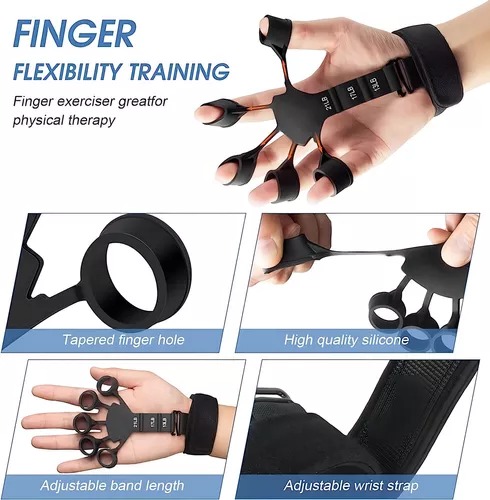 - Ajuste Personalizado: Con bandas ajustables y silicona de alta calidad, el dispositivo se adapta cómodamente a diferentes tamaños de manos y brinda un entrenamiento seguro y efectivo.