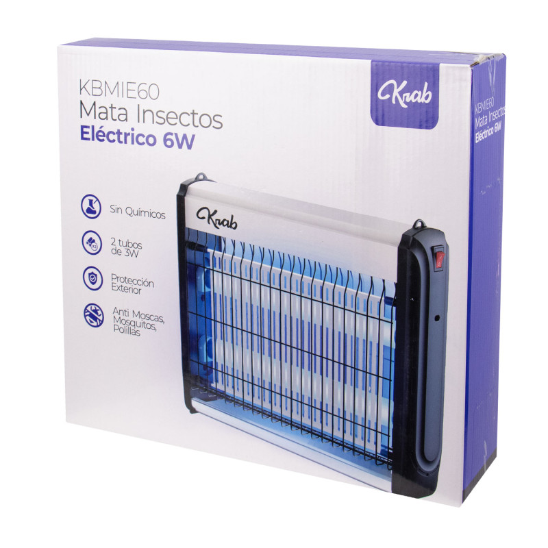 Mata Insectos Electrico Krab KBMIE60 / 6W / 2 Lamparas UV / 220V ~ 50Hz - Blanco/Negro